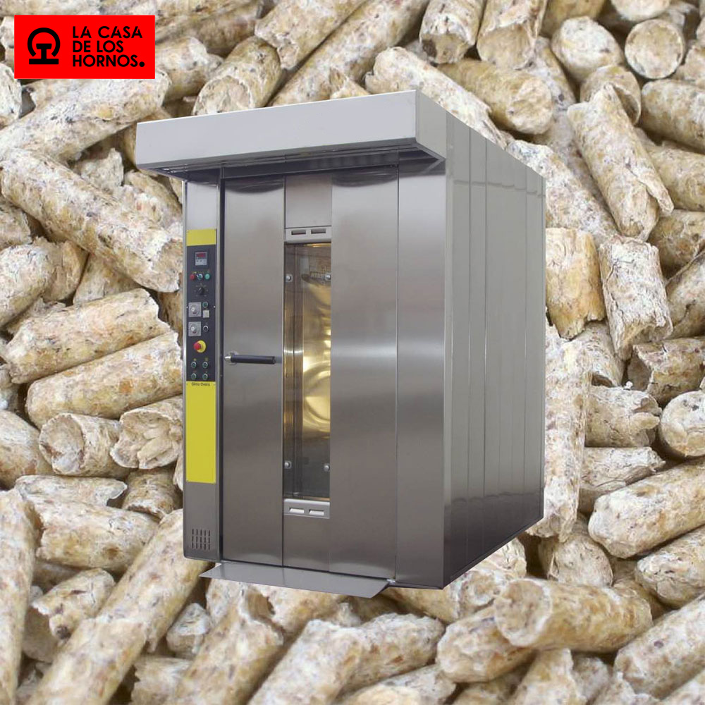 – El horno RotorPellet es un horno de carro giratorio con una unidad de calentamiento colocada en la parte posterior con operación de pellet.