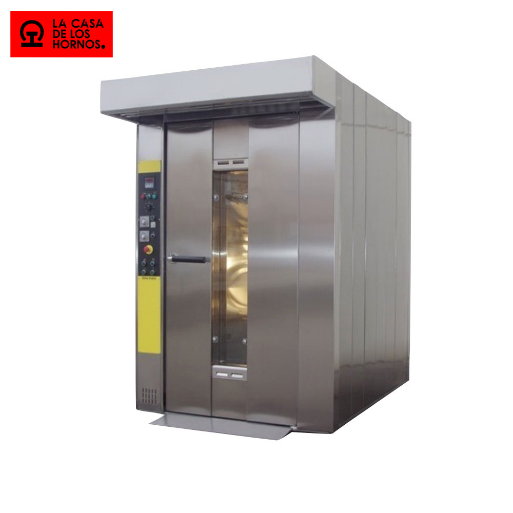 – El horno Rotor es un horno de carro giratorio con una unidad de calentamiento ubicada en la parte trasera que funciona con gas, gasoil, leña, pellets, electricidad.